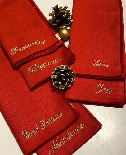 A Table Embroidered Linen Napkin Red - Pomegranate
