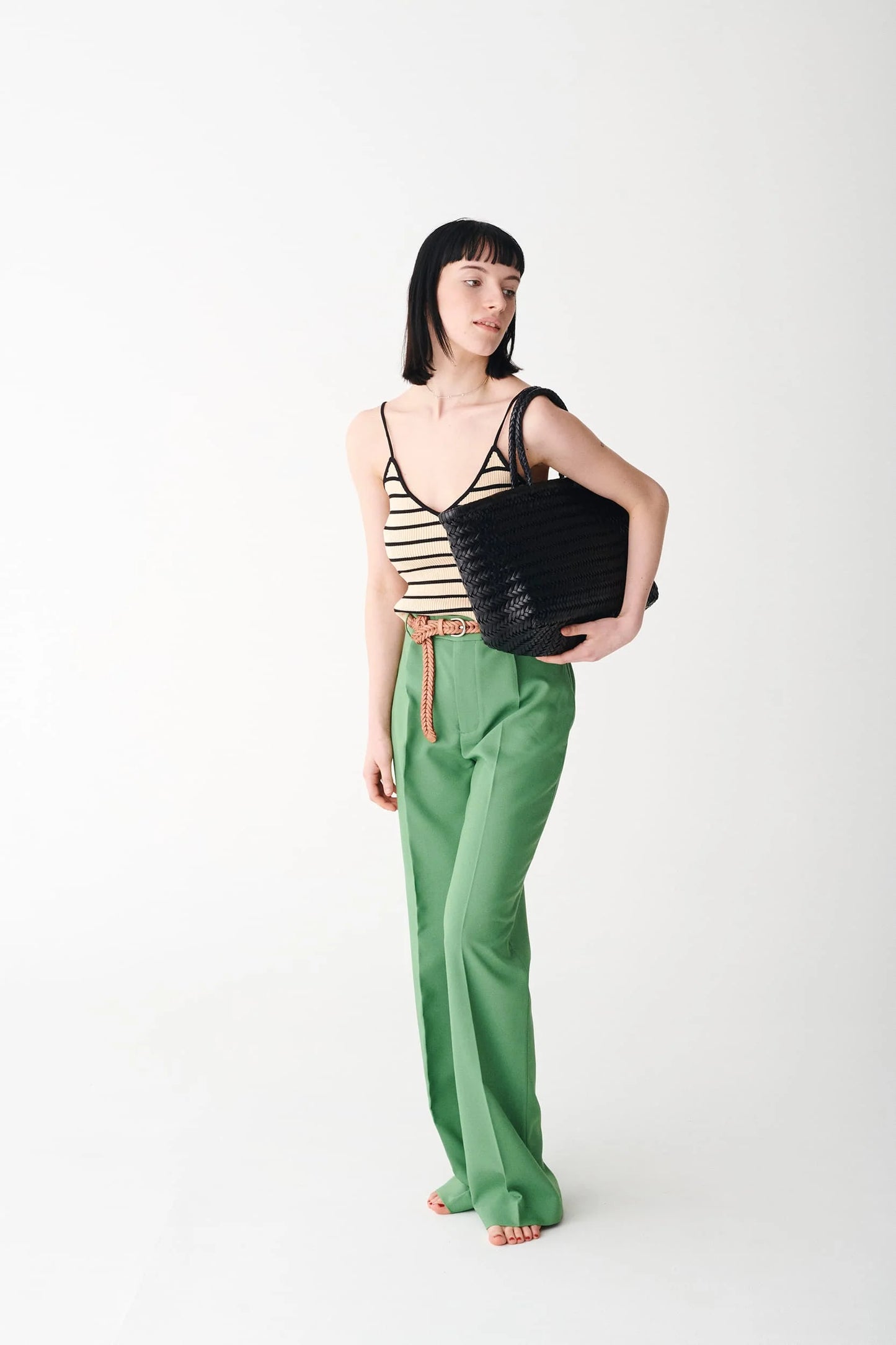 This is the bigger version of Dragon Diffusion’s iconic, best-selling bag—a roomy, hand-woven basket in smooth, buffalo calf leather. Handcrafted by our artisan weavers in one piece, the diagonal chevron weave is what makes this style unique. And, remaining true to traditional basket weaving techniques, the bag comes unlined with an open top. Ideal for your next beach outing or a trip to your local market.