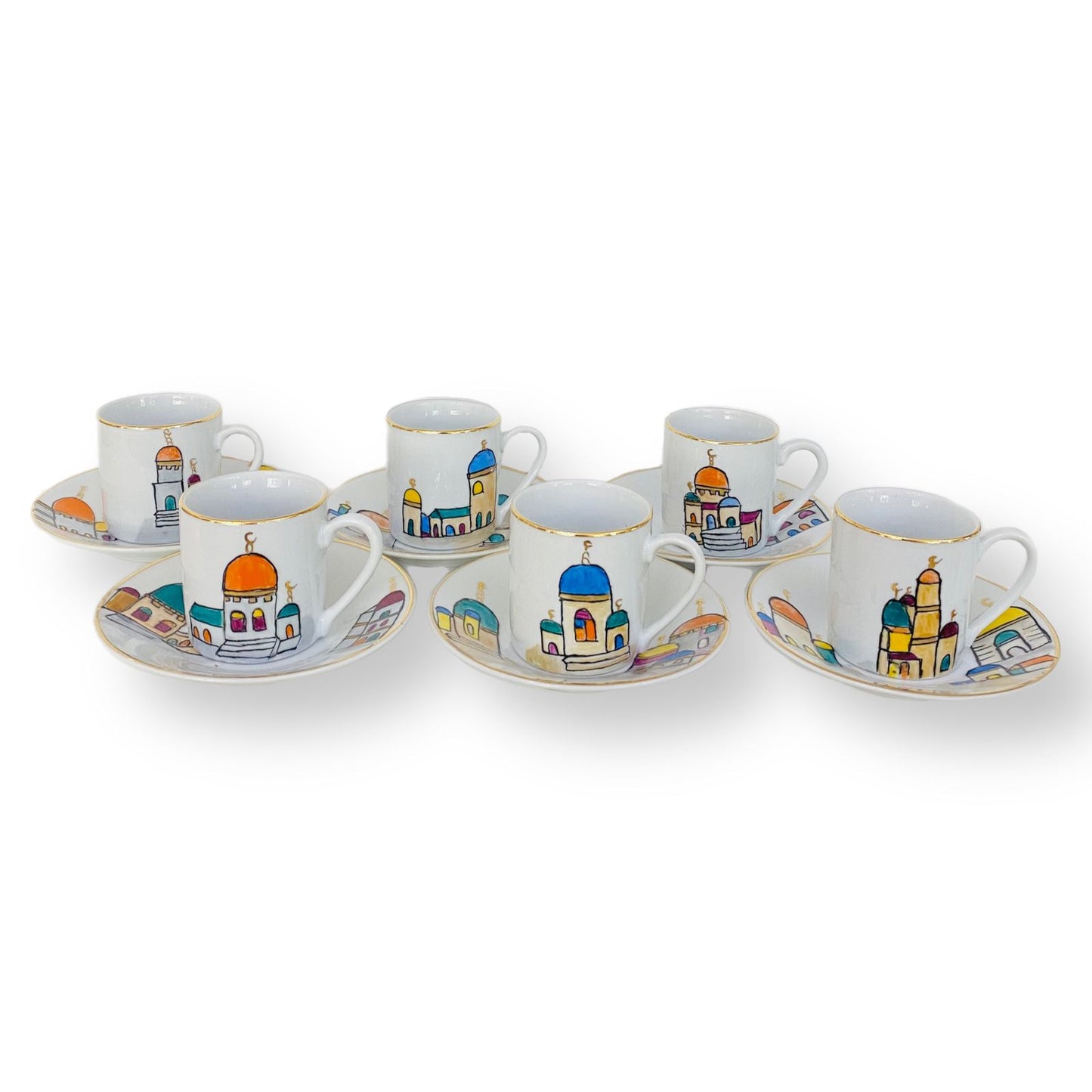 Colored Mosques Coffee Cups with Plate - Set of 6