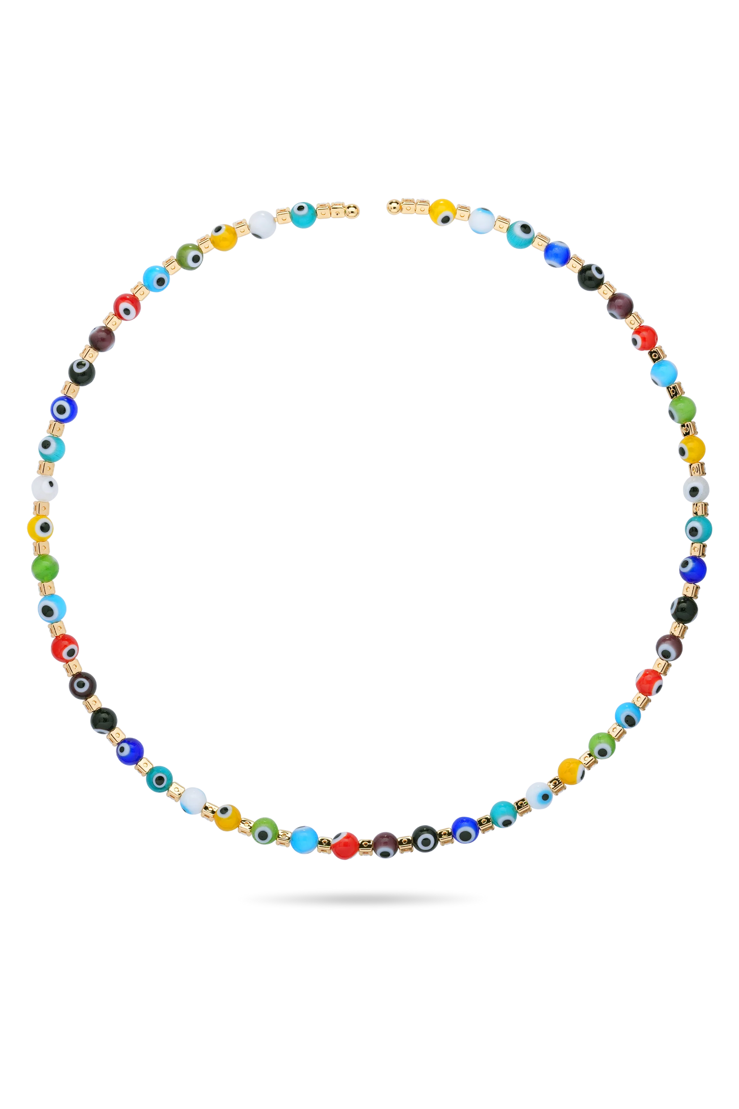 رمز عين الشر قريب جدًا من قلوبنا في عالم Crystal Haze، لذلك نحب فكرة ارتدائه بالقرب من صدرك أيضًا. إن قلادة Rainbow Evil Eye Torque من Crystal Haze Jewelry، الغارقة في التاريخ والمزينة بألوان نابضة بالحياة، هي أكثر من مجرد إكسسوار يلفت الأنظار.