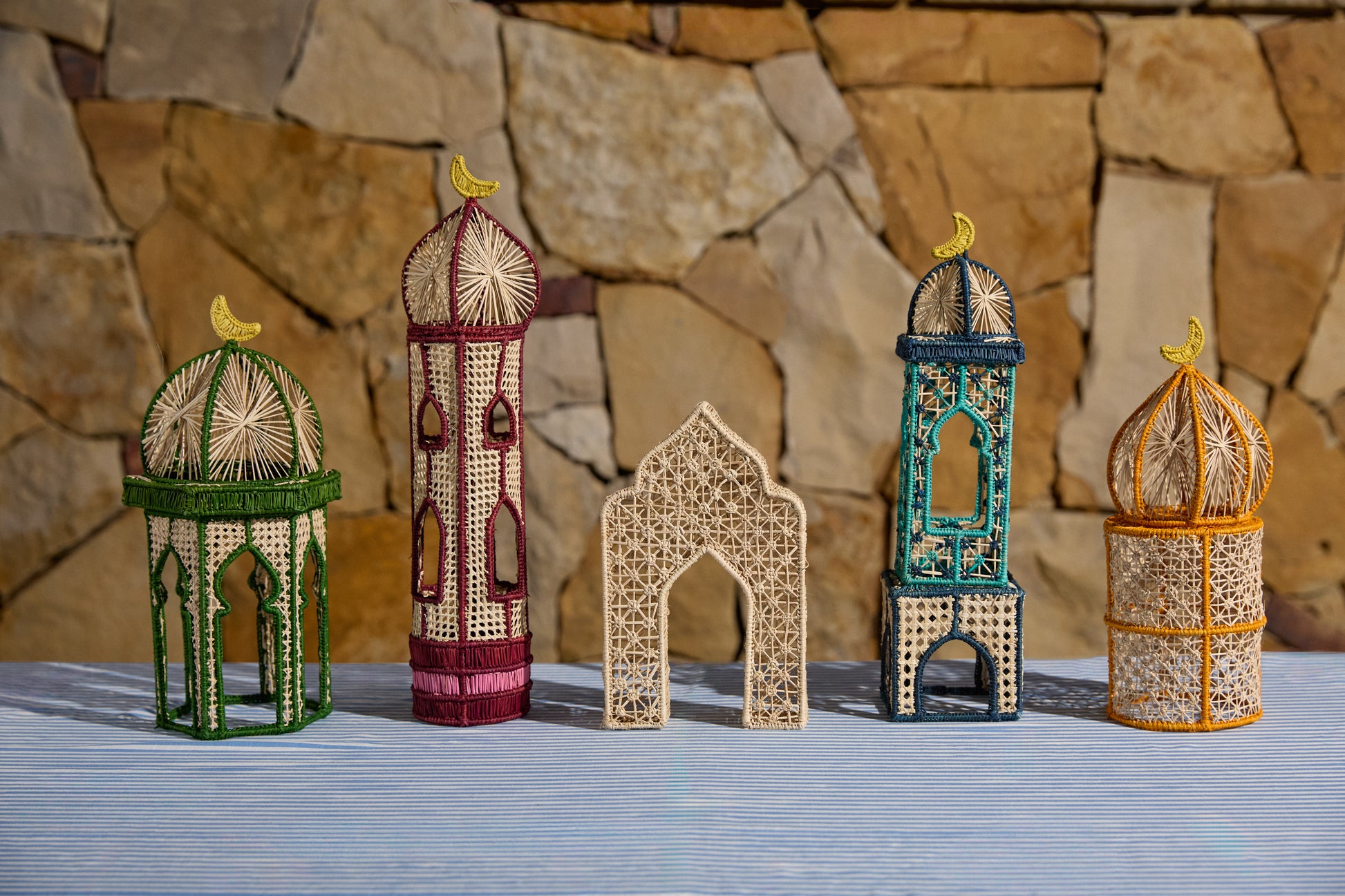 These stunning and unique minaret candle holders are made by artisans from Usiacurí, a vibrant town on the Caribbean coast of Colombia. Using a traditional technique that has been passed down through generations, the process begins by shaping a wireframe, over which they weave intricate patterns with Iraca palm. The result is an exceptionally detailed work of art that will elevate any table setting.