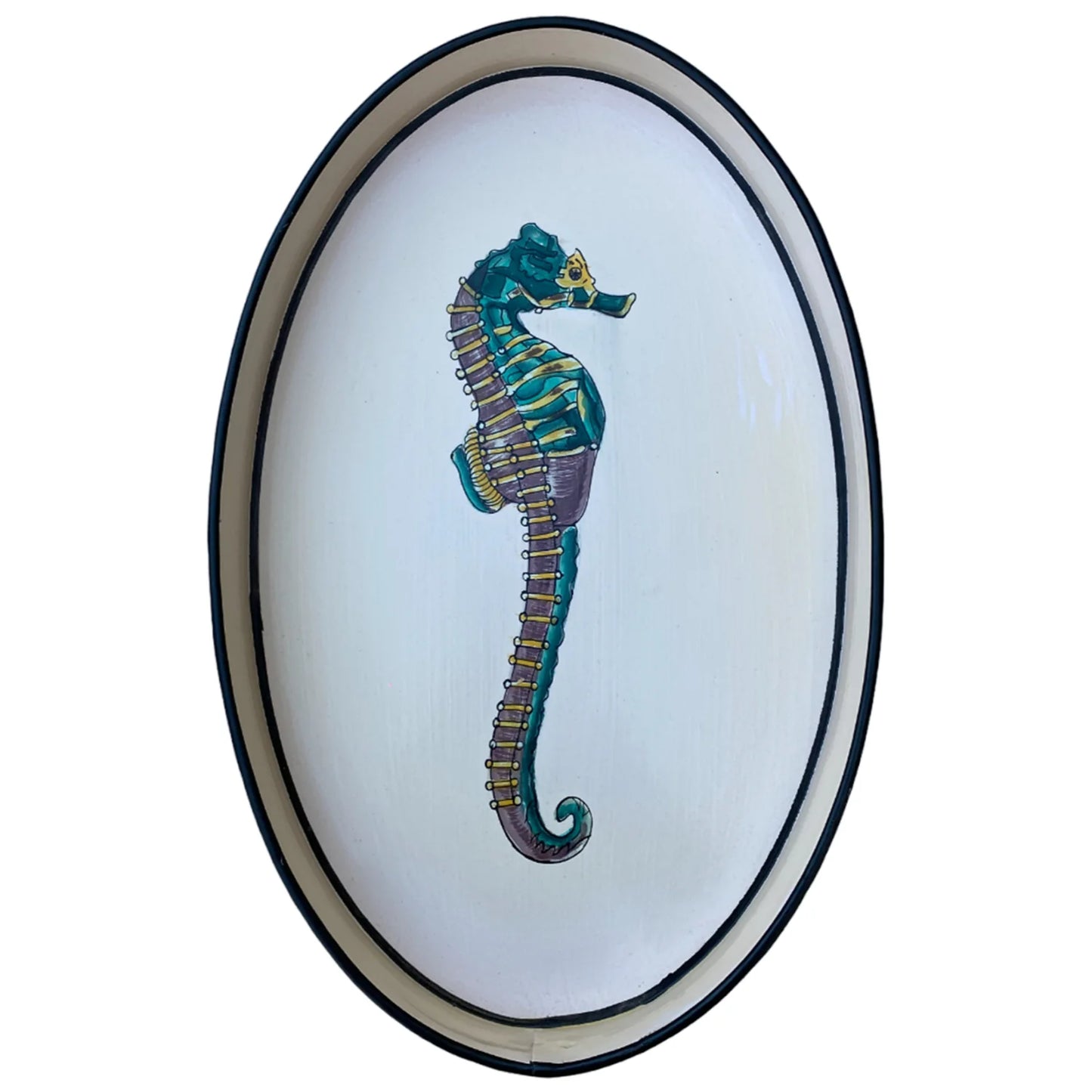 Les Ottomans Oval Painted Iron Tray - Seahorse