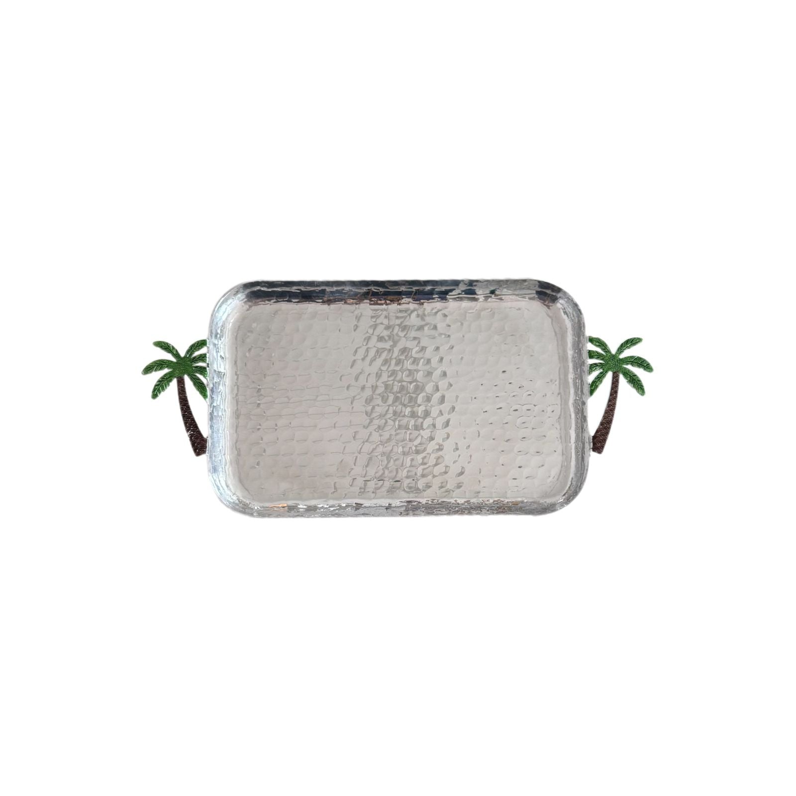 Elevate your table setting with this sophisticated aluminium tray, where refined design meets practical elegance. The piece features intricately engraved palm tree cutout handles that add a distinctive botanical accent, making it as visually striking as it is functional. Crafted from durable aluminium in a lustrous silver finish, this tray seamlessly complements contemporary and classic interiors alike. Perfect for serving, entertaining, or displaying decorative objects, it combines understated luxury with everyday utility.