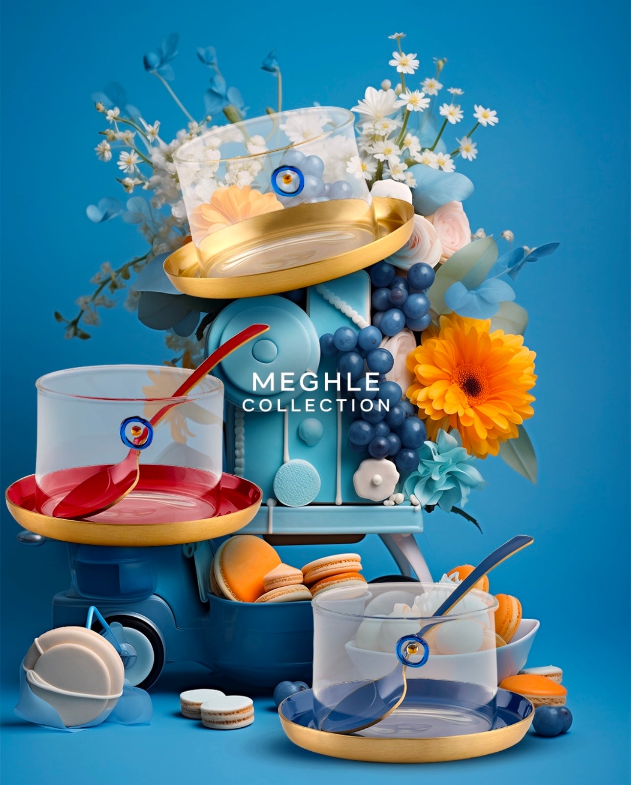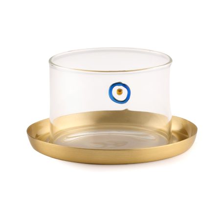 Our Blue Eye Dessert Bowl with Gold Brass Saucer set enhances your dining table with elegance and luxury. This exquisite collection is perfect for serving a delightful range of desserts, from creamy ice cream and fresh fruit salad to traditional Lebanese specialties like Meghle.