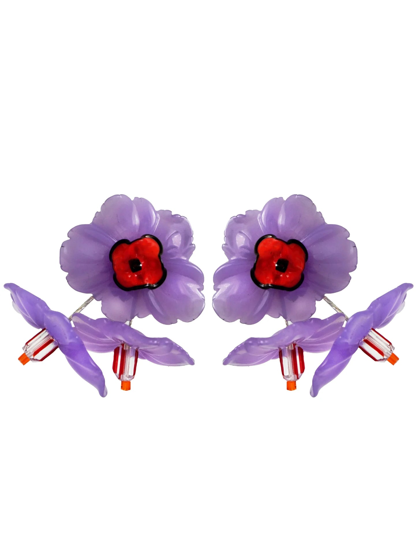 Imagine a bouquet of exotic elements, chosen stone by stone. Our search in France brought us vintage flowers and Czech glass beads from the 1940s, each piece selected as carefully as each bloom in a floral arrangement. These are not just earrings; they are sculptures to be worn.