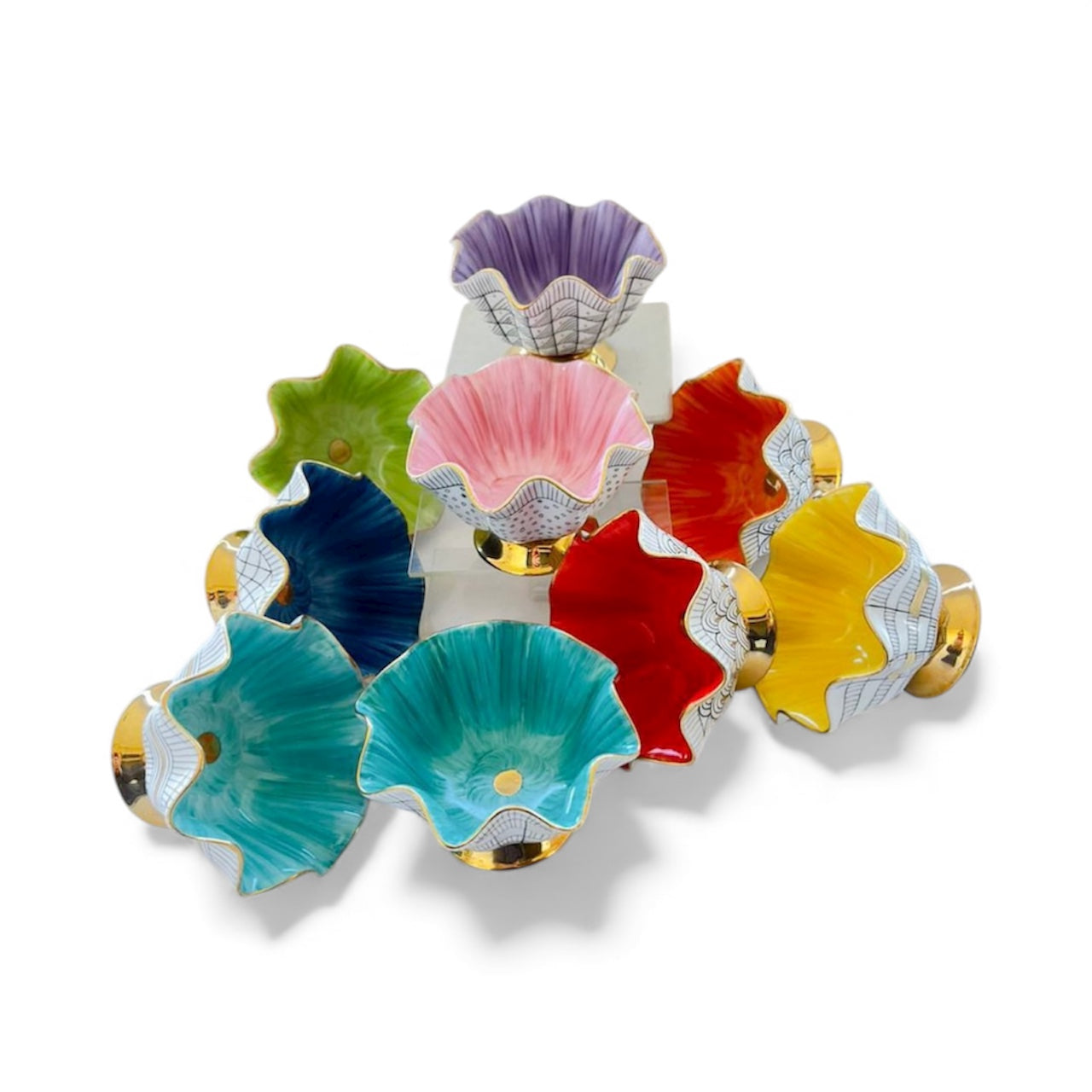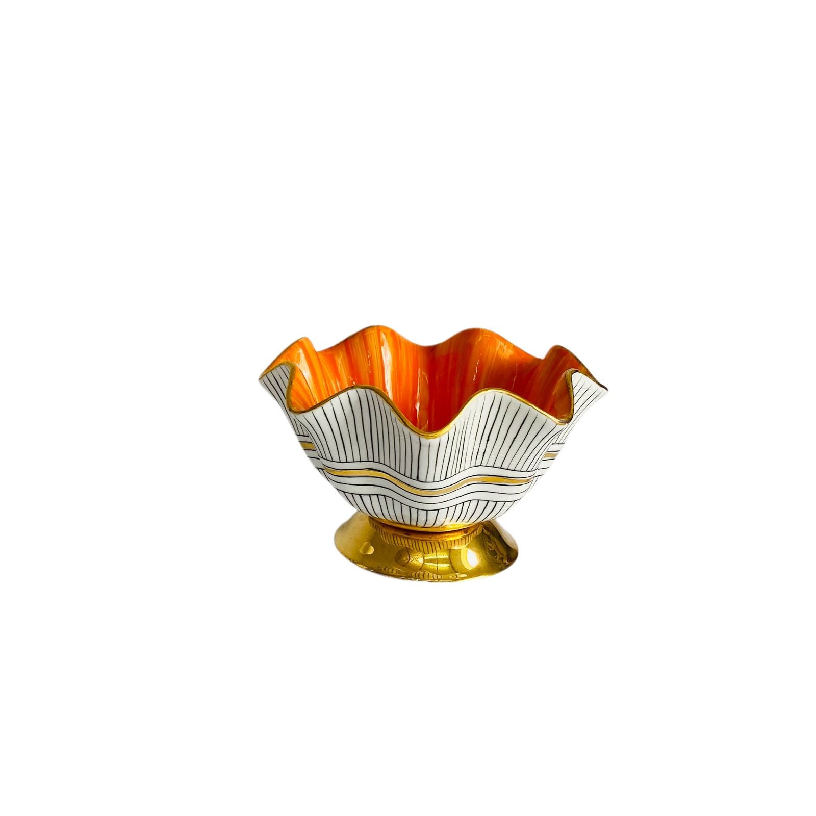 Hand Painted Porcelain Pedestal Zig Zag Small Bowl