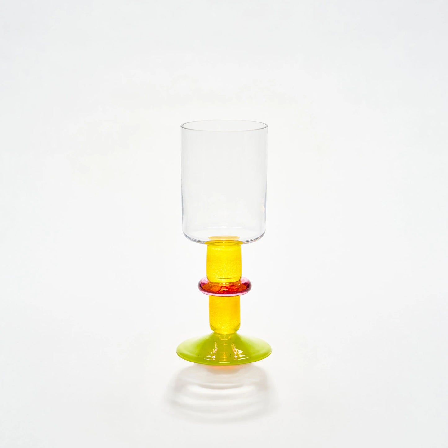 The Miami Wine Glasses feature stems of stacked shapes in candy-like colours.