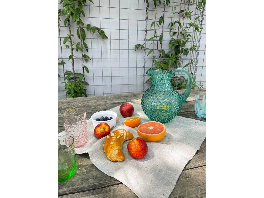 This elegant jug ordained with the traditional hobnail pattern native to Bohemia, Czech Republic is a delightful and useful piece for any occasion. It is mouth-blown and 100% handmade with care and expertise. An eternal classic that now comes in an array of colours, that will fit any mood or season.