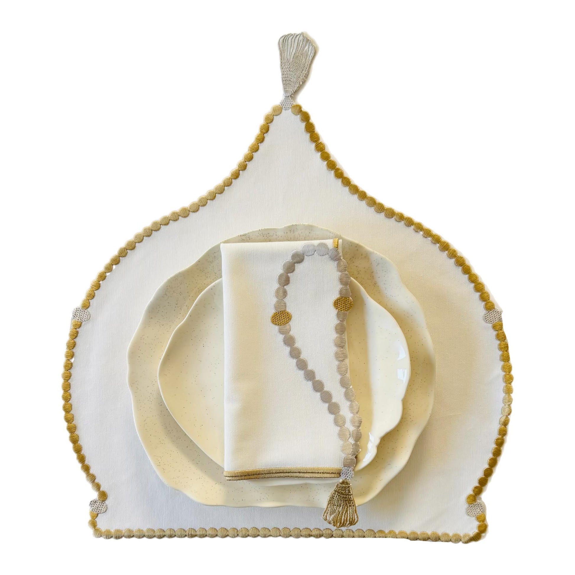 Elevate your table setting with the Sibha Placemat in striking turquoise. Crafted with meticulous attention to detail, this placemat combines sophisticated design with practical functionality. The rich turquoise hue adds a contemporary touch to any dining aesthetic, while its durable construction ensures lasting elegance through everyday use. Perfect for creating a curated tablescape that reflects refined taste and cultural appreciation. An essential accent piece for those who value both artistry and quality in their home décor.